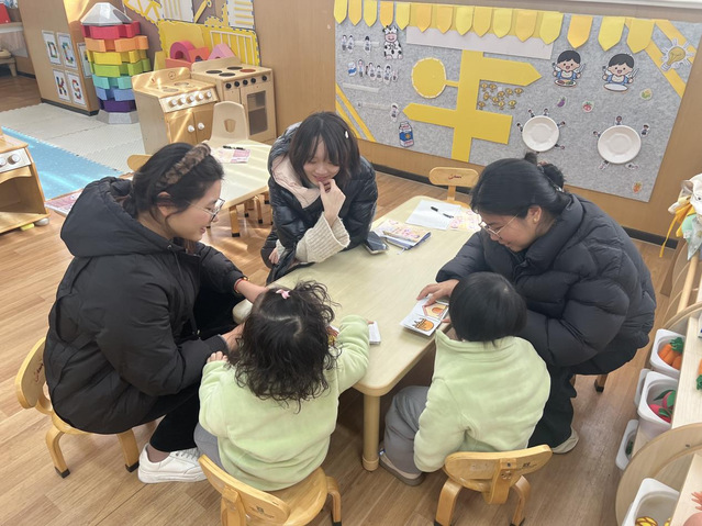 实践期间,小组同学们与托班带班教师开展专题研讨,围绕幼儿行为观察方法、个性化引导技巧、早教手册应用场景等核心议题深入交流。一线教师结合长期教学经验,分享了针对不同发展水平幼儿的教育引导案例与实操技巧,为同学们解答了实践中遇到的困惑。这场深度交流让同学们进一步深化了对0-3岁婴幼儿教育规律的认知,也为手册的持续优化完善提供了坚实的专业支撑。