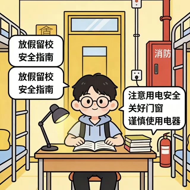 留校期间注意饮食卫生,不食用过期变质食物;在寝室与校园内活动时,避免追逐打闹、攀爬危险区域,自觉防范意外磕碰与安全事故,守护好自身人身安全。
