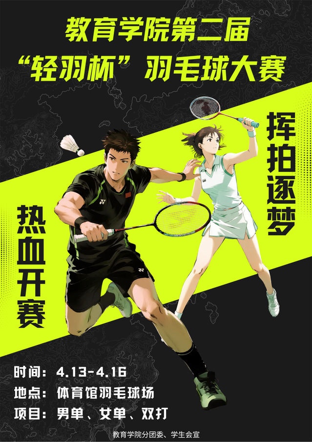 3. 比赛前需配合工作人员安排,球拍和羽毛球自备.