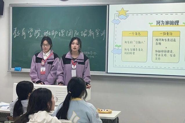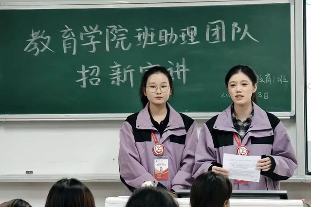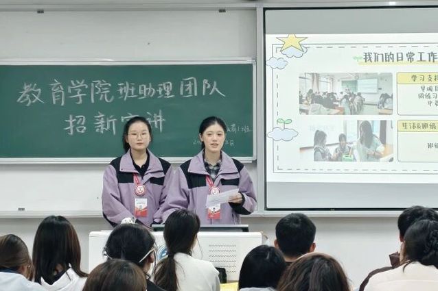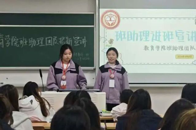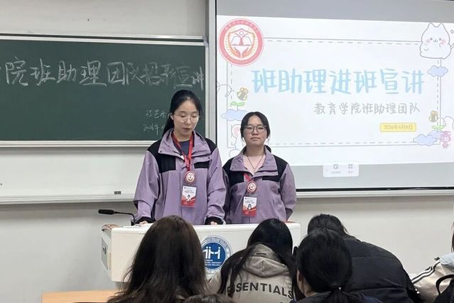 为帮助同学们更全面地了解教育学院班助理团队,进一步吸纳有热情、有责任感的新成员,班助理团队于2026年4月8日开展招新宣讲活动,围绕团队定位、日常工作开展情况、具体岗位分工以及成员成长收获等方面进行了系统介绍,使同学们对班助理这一角色有了更加全面、立体的认识。