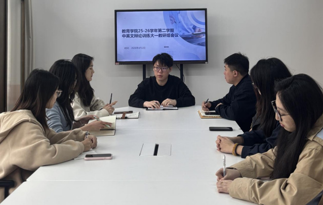 2026年4月1日中午11:50,24级大二教研组于旭华楼106会议室召开第一次例会,围绕中英文辩论训练工作展开部署。会议明确,大二年级将充分采用“4+4+1”训练模式,试点班联合马院开展思政融合训练,非试点班分AB组分层施教,推进中英文分模块针对性训练。