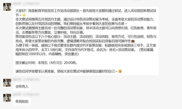 初试筛选结束后,教育学院党员工作站各部门有序开展复试考核,对通过初试的同学们进行能力考察,进一步检验面试者是否能胜任未来工作,以选拔适配岗位的优秀人才。