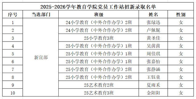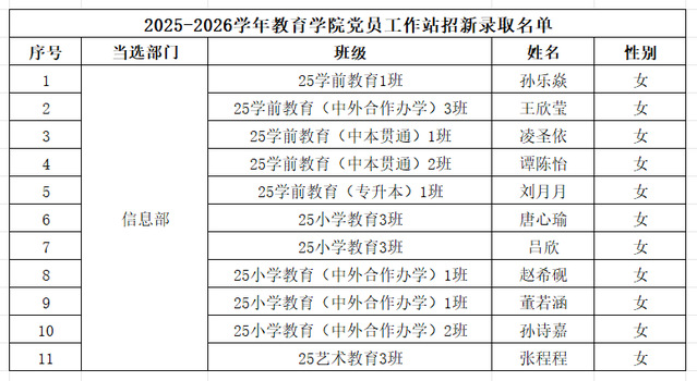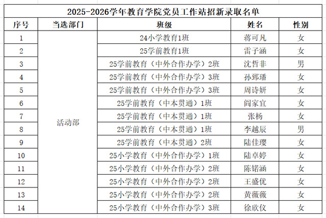 经过层层筛选与综合评议,2025-2026学年教育学院党员工作站成员拟录取名单现已确定,快来看看你有没有入选吧!