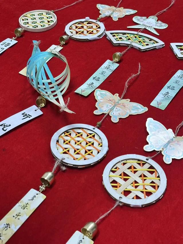 活动当天,现场竹篾轻展、铃铛清脆、彩绳错落,材料齐全、布置温馨。同学们在忙碌的课业之余踊跃参与,或低头端详竹条纹理,或轻声交流编织设想,在静谧又充满期待的氛围中,开启与传统手工艺的美好相遇,活动现场洋溢着青春与文化交融的气息。