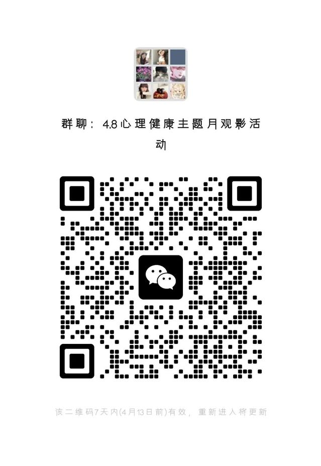 有意向参与的同学请于4月7日(周二)前进入活动通知群,我们将在群内发起投票,共同选定观看的心理健康主题影片。