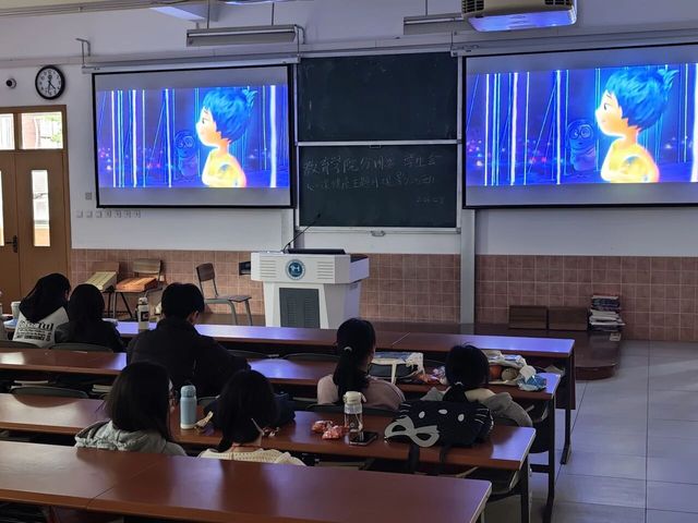 电影播放期间,现场氛围温馨而安静,同学们全神贯注、沉浸其中,跟随影片《头脑特工队2》中主角——13岁女孩茉莉的成长轨迹,在一次次自我冒险与突破中接纳完整的自己。